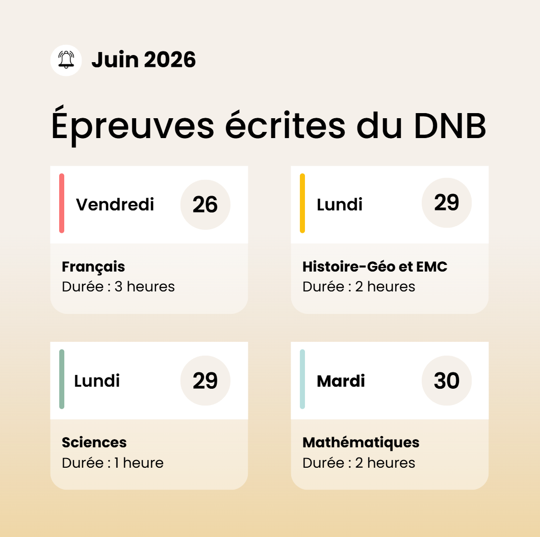 Dates et horaires des épreuves écrites du Diplôme National du Brevet pour la session 2026