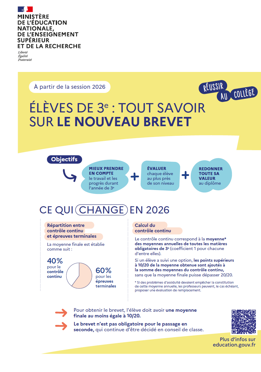 Nouveautés du Brevet à partir de la session 2026
