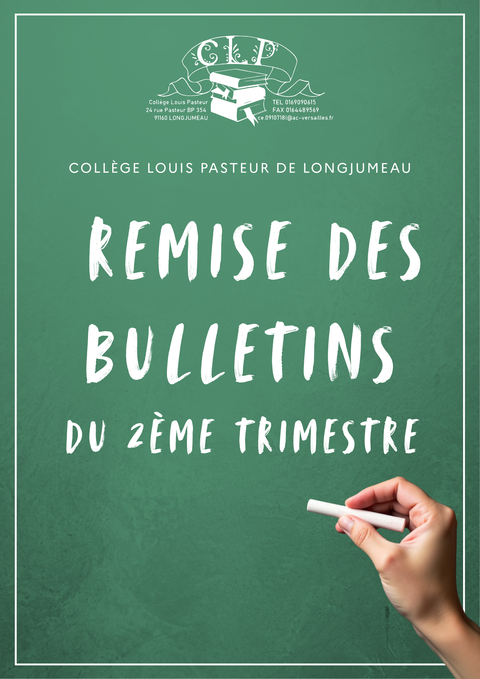 La remise des bulletins du 2ème trimestre se tiendra les 23 et 24 mars 2026, sur rendez-vous.