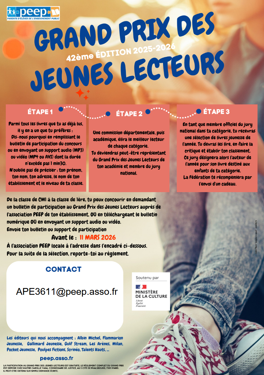 La PEEP (fédération de parents d'élèves) organise son concours annuel ! Tous les élèves de la 6ème à la 3ème peuvent y participer.