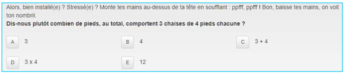 L’épreuve se présente sous la forme d’un QCM de 20 questions qui dure 45 minutes. Les questions sont originales et sortent du cadre scolaire.