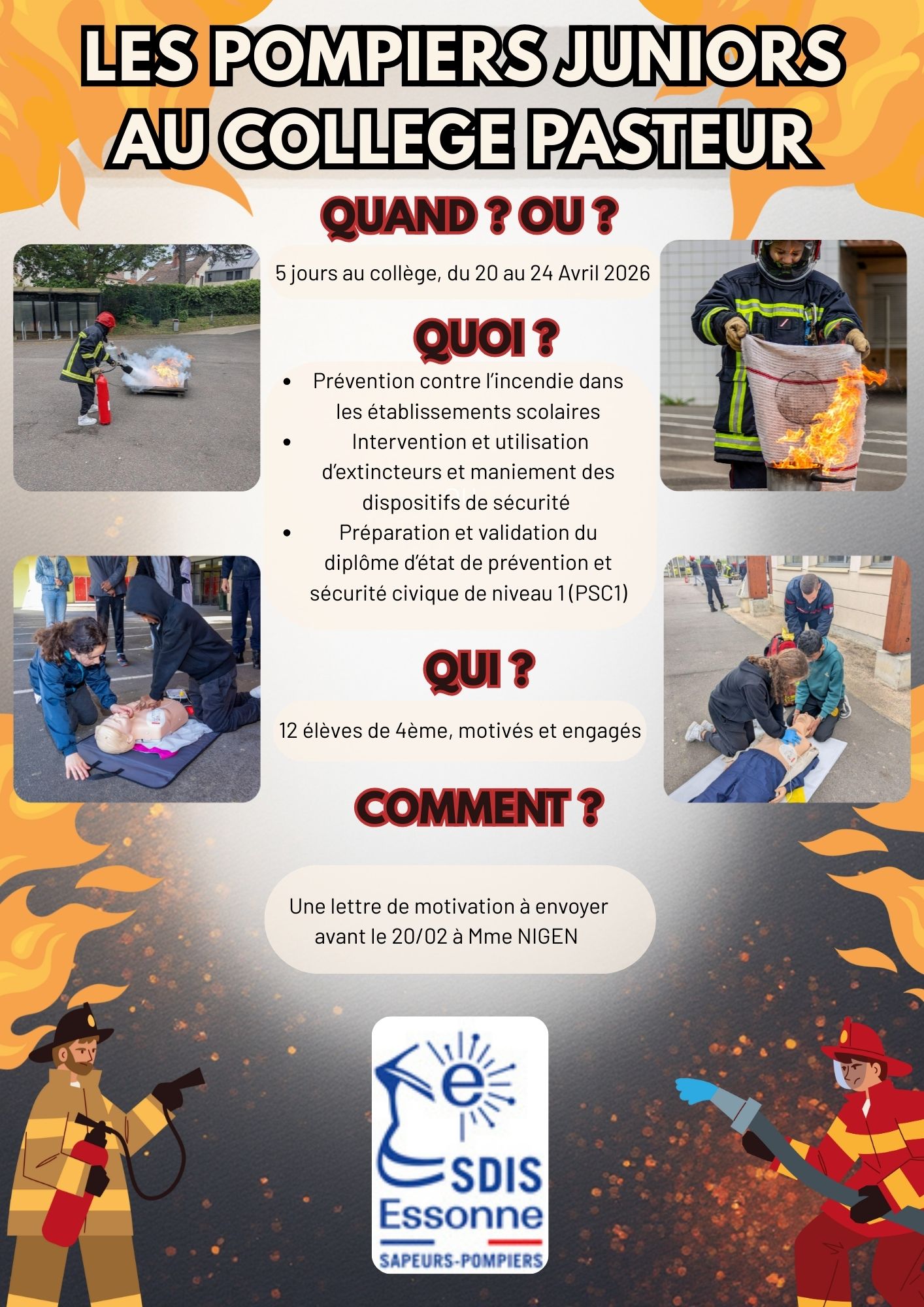 Le collège propose à nouveau cette année le projet « Pompiers Juniors », en partenariat avec le SDIS 91.